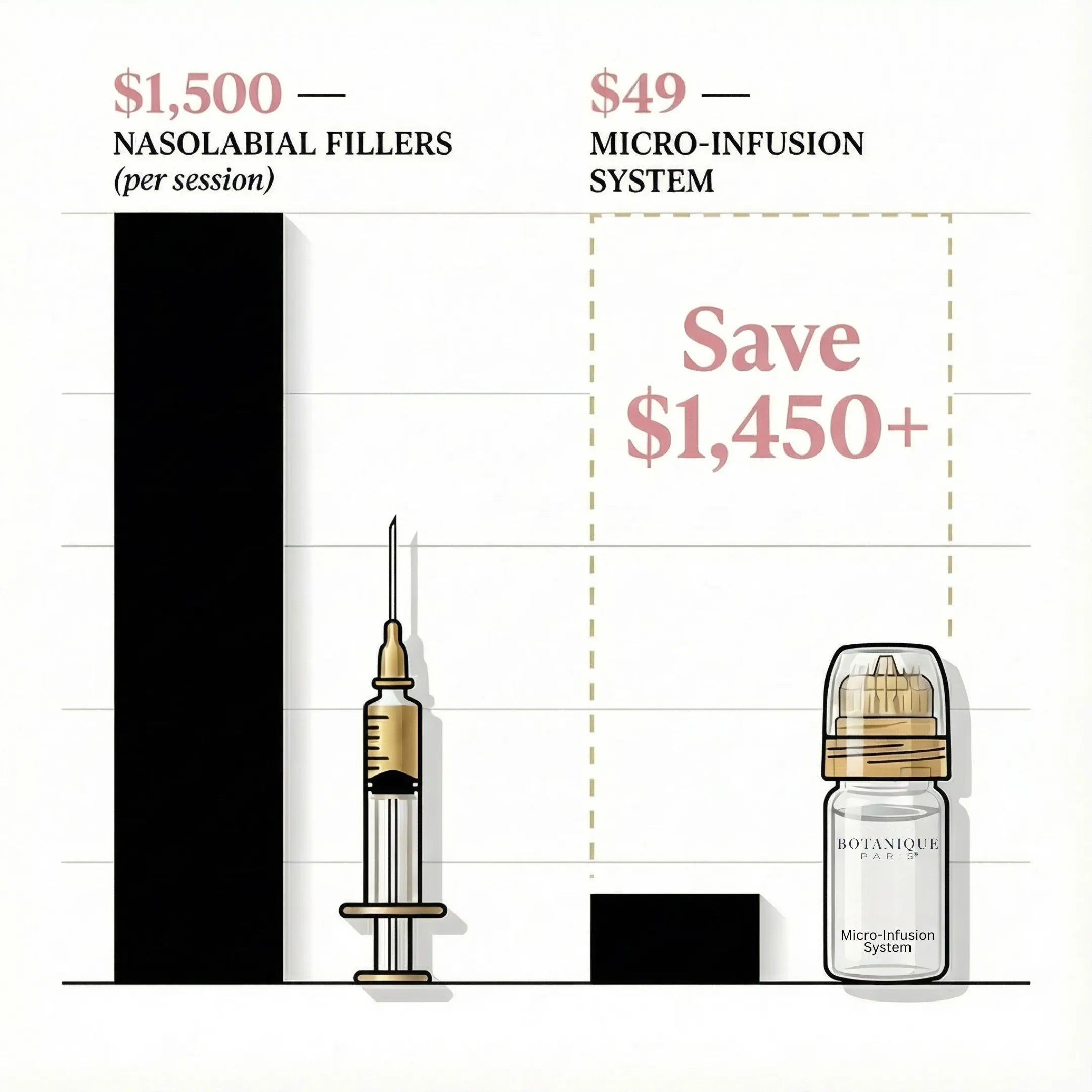 Surface serums can't reach fold depth. Fillers plump temporarily but don't rebuild. Botanique Paris® delivers 30 clinically-backed actives directly where nasolabial folds form—via painless 0.25mm precision stamping.