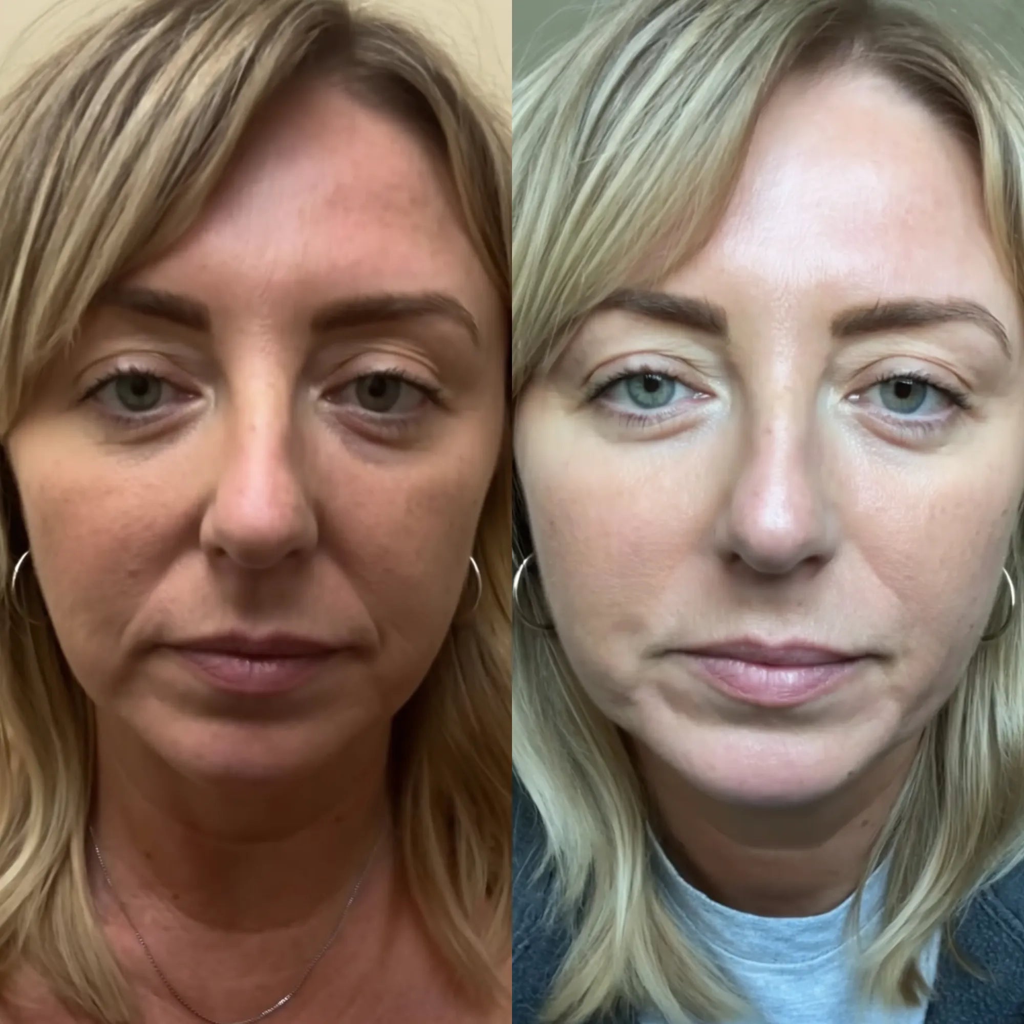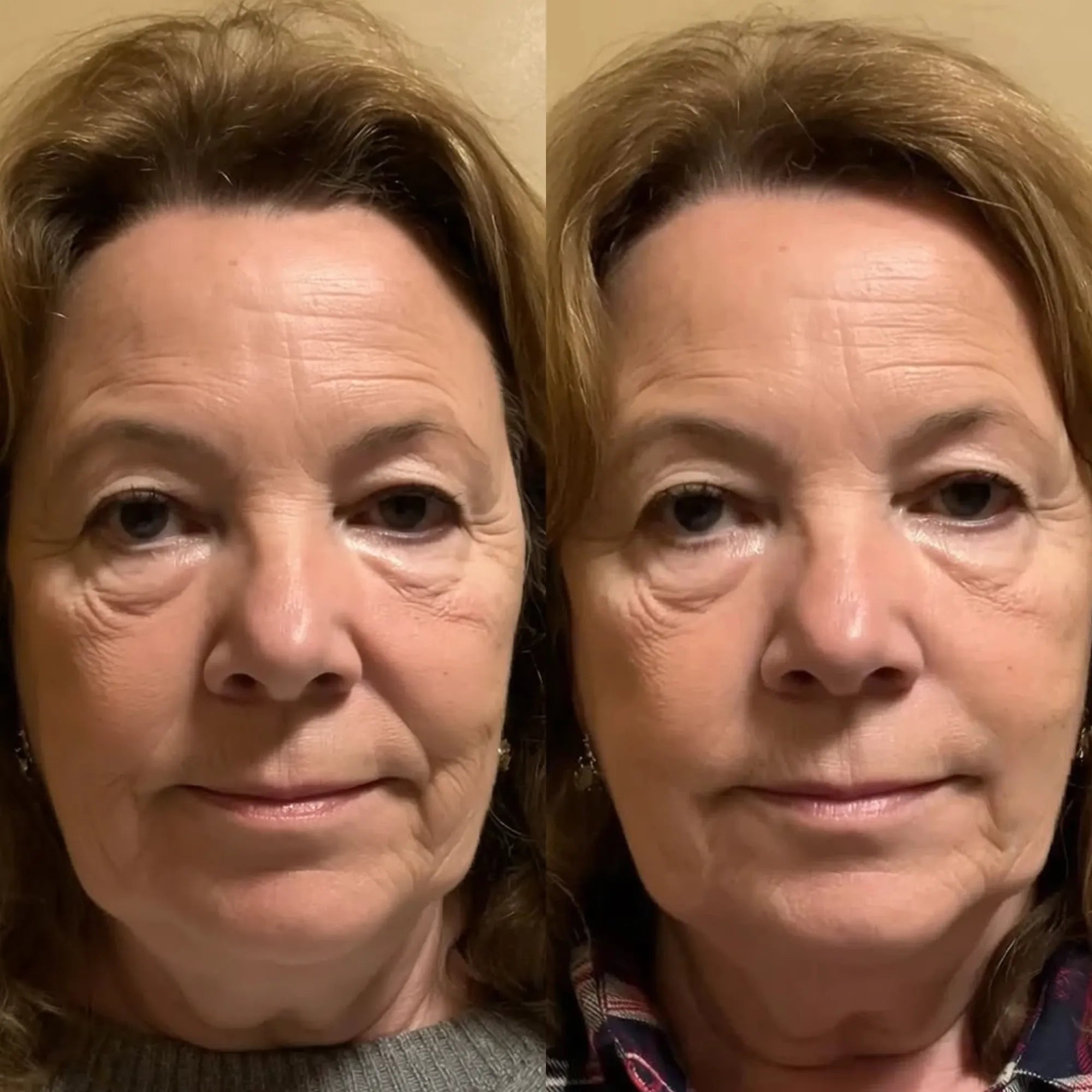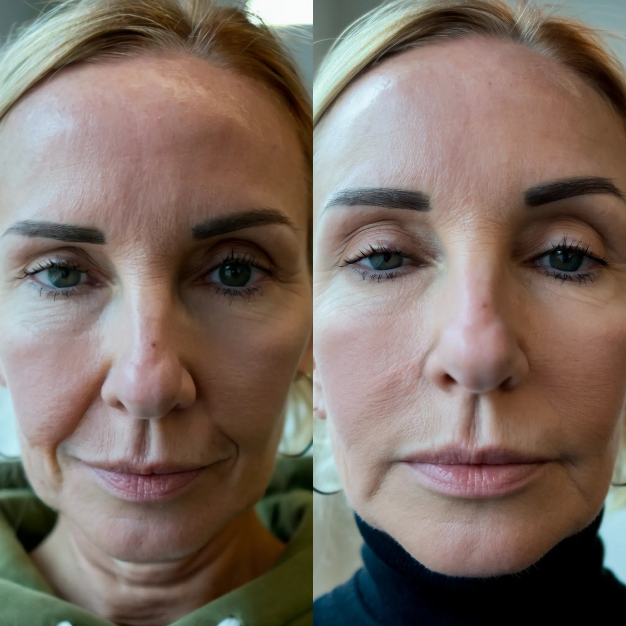 Most users notice early improvements within 3–4 weeks of consistent use. The first changes are typically smoother texture, softer fold edges, and more hydrated-looking skin around the NLF (nasolabial fold) area.